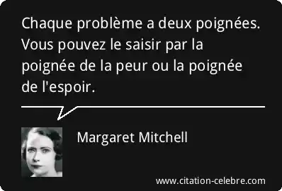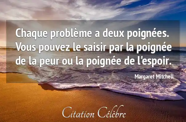 Chaque problème a deux poignées. Vous pouvez le saisir par la poignée de la peur ou la poignée de l'espoir.