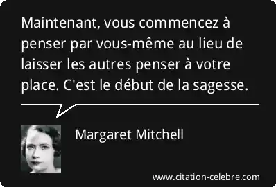 Maintenant, vous commencez à penser par vous-même au lieu de laisser les autres penser à votre place. C'est le début de la sagesse.