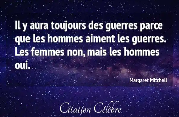 Il y aura toujours des guerres parce que les hommes aiment les guerres. Les femmes non, mais les hommes oui.