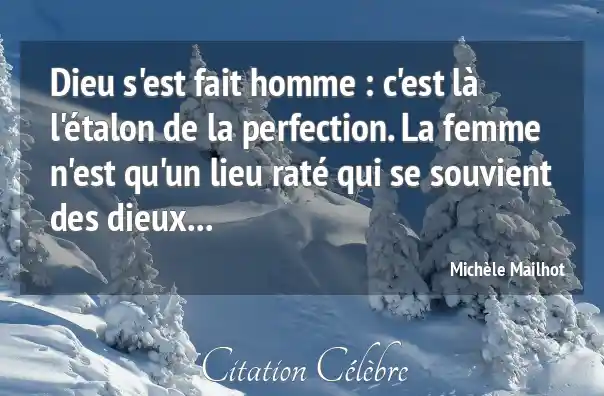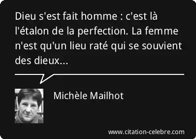 Dieu s'est fait homme : c'est là l'étalon de la perfection. La femme n'est qu'un lieu raté qui se souvient des dieux...