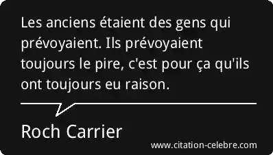 Les anciens étaient des gens qui prévoyaient. Ils prévoyaient toujours le pire, c'est pour ça qu'ils ont toujours eu raison.