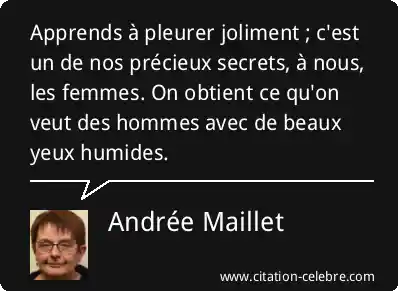 Apprends à pleurer joliment ; c'est un de nos précieux secrets, à nous, les femmes. On obtient ce qu'on veut des hommes avec de beaux yeux humides.