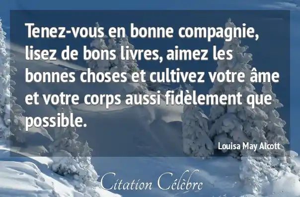 Tenez-vous en bonne compagnie, lisez de bons livres, aimez les bonnes choses et cultivez votre âme et votre corps aussi fidèlement que possible.