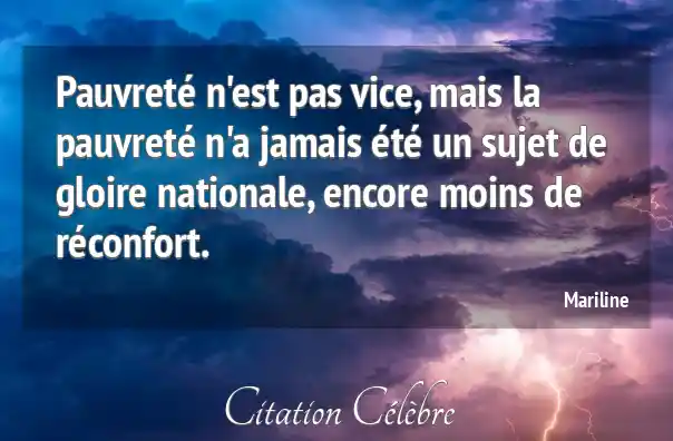 Pauvreté n'est pas vice, mais la pauvreté n'a jamais été un sujet de gloire nationale, encore moins de réconfort.