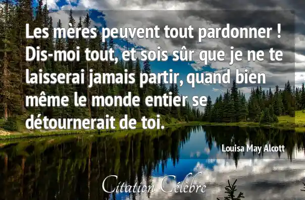 Les mères peuvent tout pardonner ! Dis-moi tout, et sois sûr que je ne te laisserai jamais partir, quand bien même le monde entier se détournerait de toi.