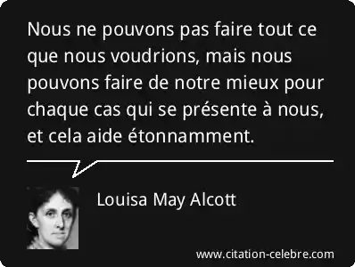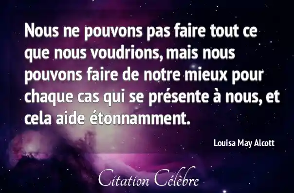 Nous ne pouvons pas faire tout ce que nous voudrions, mais nous pouvons faire de notre mieux pour chaque cas qui se présente à nous, et cela aide étonnamment.