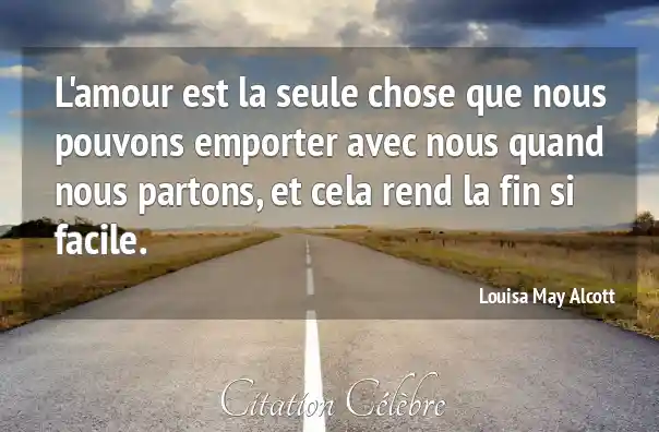 L'amour est la seule chose que nous pouvons emporter avec nous quand nous partons, et cela rend la fin si facile.
