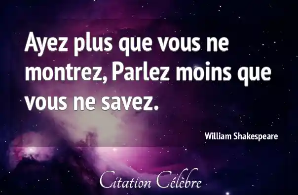 Ayez plus que vous ne montrez, Parlez moins que vous ne savez.