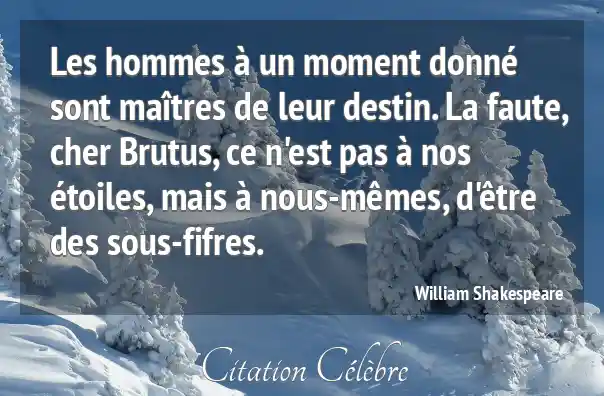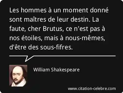Les hommes à un moment donné sont maîtres de leur destin. La faute, cher Brutus, ce n'est pas à nos étoiles, mais à nous-mêmes, d'être des sous-fifres.