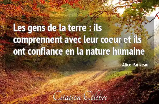 Les gens de la terre : ils comprennent avec leur coeur et ils ont confiance en la nature humaine