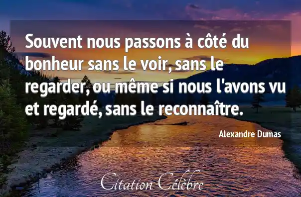 Souvent nous passons à côté du bonheur sans le voir, sans le regarder, ou même si nous l'avons vu et regardé, sans le reconnaître.