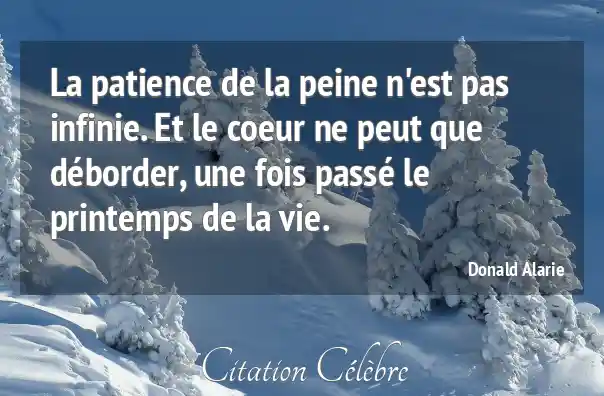 La patience de la peine n'est pas infinie. Et le coeur ne peut que déborder, une fois passé le printemps de la vie.