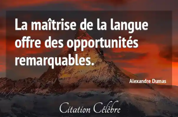 Citation Alexandre Dumas langue : La maîtrise de la langue offre des opportunités remarquables....