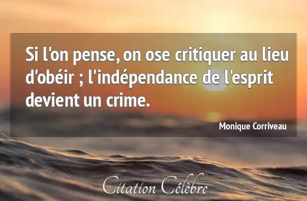 Si l'on pense, on ose critiquer au lieu d'obéir ; l'indépendance de l'esprit devient un crime.