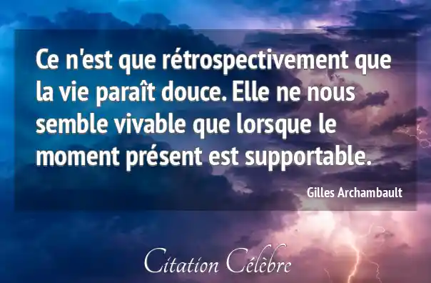 Ce n'est que rétrospectivement que la vie paraît douce. Elle ne nous semble vivable que lorsque le moment présent est supportable.