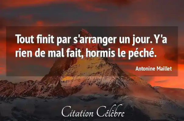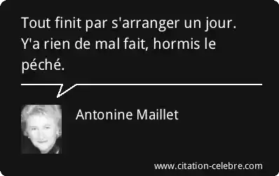Tout finit par s'arranger un jour. Y'a rien de mal fait, hormis le péché.