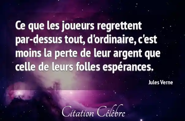 Ce que les joueurs regrettent par-dessus tout, d'ordinaire, c'est moins la perte de leur argent que celle de leurs folles espérances.