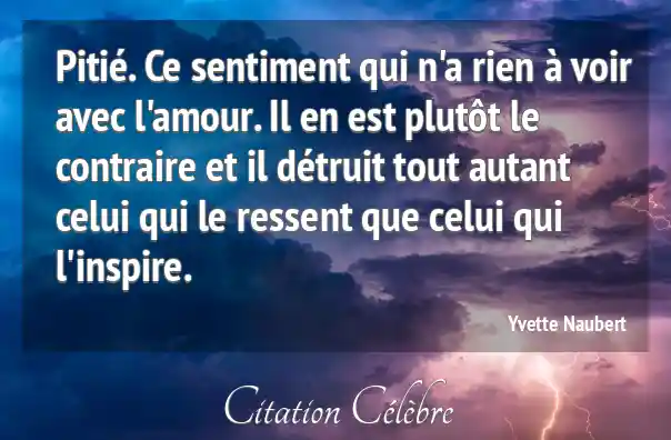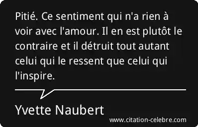 Pitié. Ce sentiment qui n'a rien à voir avec l'amour. Il en est plutôt le contraire et il détruit tout autant celui qui le ressent que celui qui l'inspire.