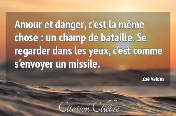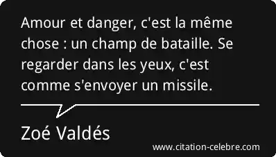 Amour et danger, c'est la même chose : un champ de bataille. Se regarder dans les yeux, c'est comme s'envoyer un missile.