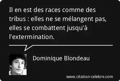 Il en est des races comme des tribus : elles ne se mélangent pas, elles se combattent jusqu'à l'extermination.