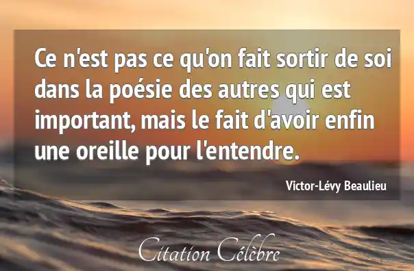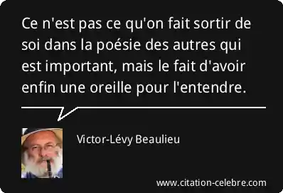 Ce n'est pas ce qu'on fait sortir de soi dans la poésie des autres qui est important, mais le fait d'avoir enfin une oreille pour l'entendre.