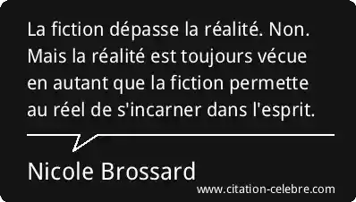 La fiction dépasse la réalité. Non. Mais la réalité est toujours vécue en autant que la fiction permette au réel de s'incarner dans l'esprit.