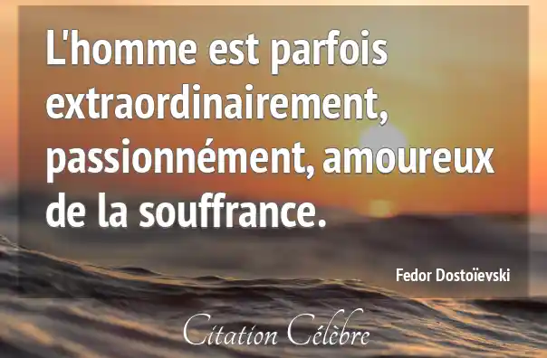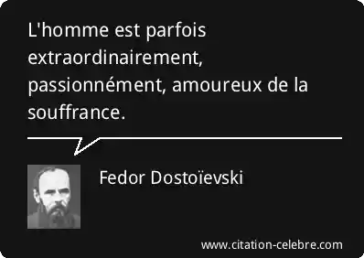 L'homme est parfois extraordinairement, passionnément, amoureux de la souffrance.