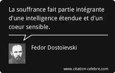 La souffrance fait partie intégrante d'une intelligence étendue et d'un coeur sensible.