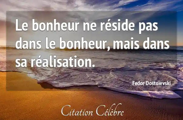 Le bonheur ne réside pas dans le bonheur, mais dans sa réalisation.