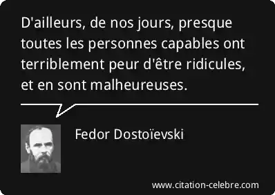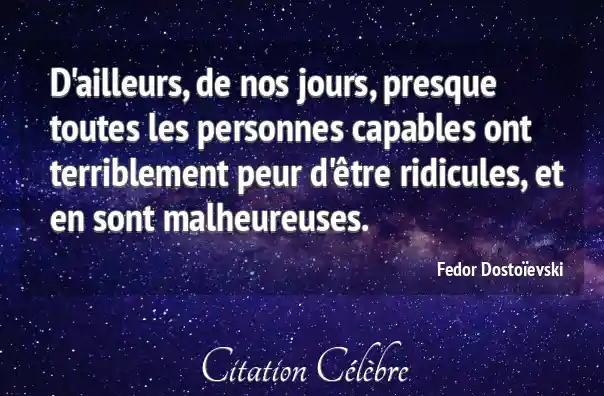 D'ailleurs, de nos jours, presque toutes les personnes capables ont terriblement peur d'être ridicules, et en sont malheureuses.