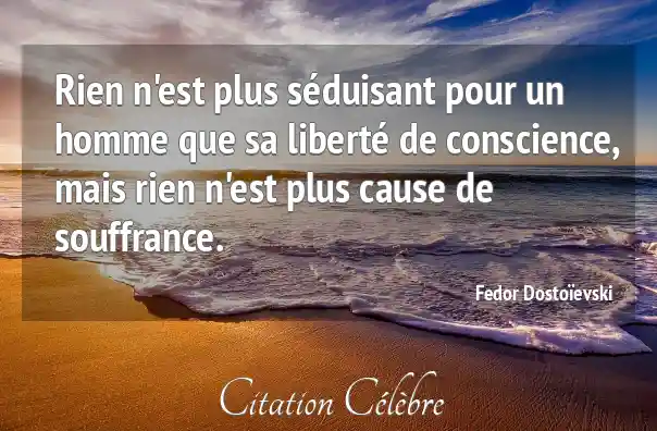 Rien n'est plus séduisant pour un homme que sa liberté de conscience, mais rien n'est plus cause de souffrance.
