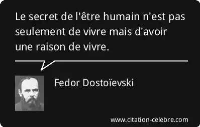 Le secret de l'être humain n'est pas seulement de vivre mais d'avoir une raison de vivre.