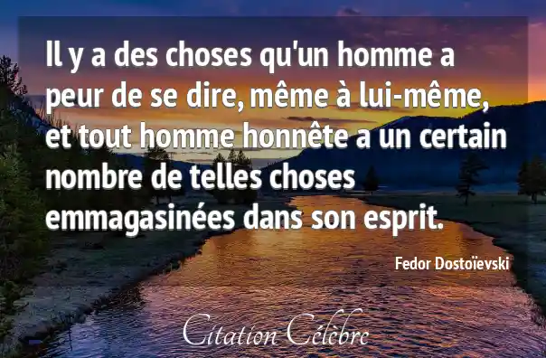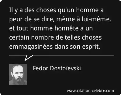 Il y a des choses qu'un homme a peur de se dire, même à lui-même, et tout homme honnête a un certain nombre de telles choses emmagasinées dans son esprit.