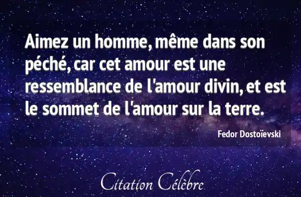 Aimez un homme, même dans son péché, car cet amour est une ressemblance de l'amour divin, et est le sommet de l'amour sur la terre.