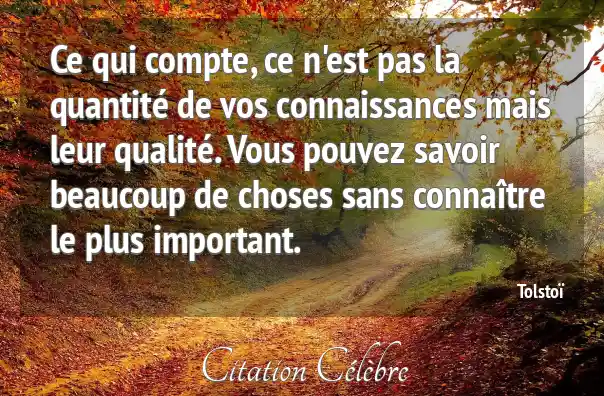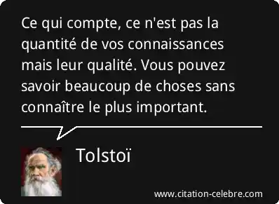 Ce qui compte, ce n'est pas la quantité de vos connaissances mais leur qualité. Vous pouvez savoir beaucoup de choses sans connaître le plus important.