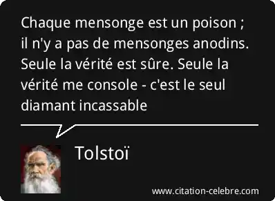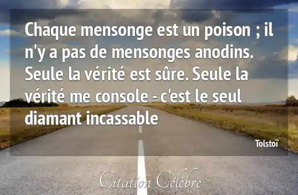 Chaque mensonge est un poison ; il n'y a pas de mensonges anodins. Seule la vérité est sûre. Seule la vérité me console - c'est le seul diamant incassable
