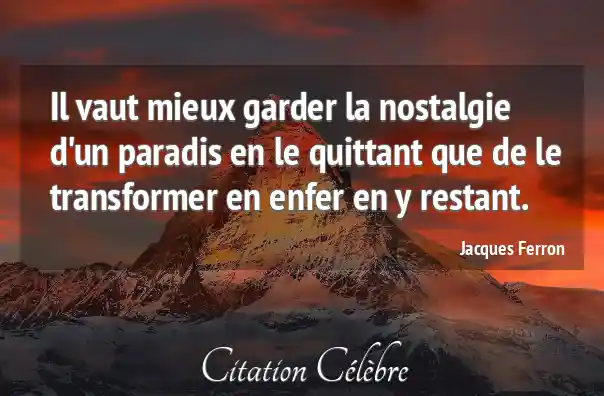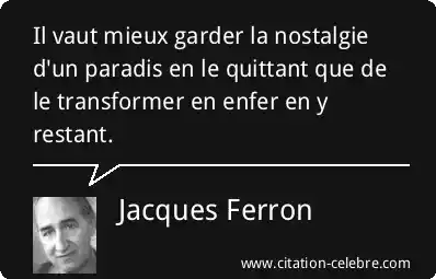 Il vaut mieux garder la nostalgie d'un paradis en le quittant que de le transformer en enfer en y restant.