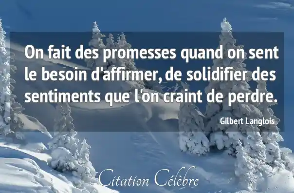 On fait des promesses quand on sent le besoin d'affirmer, de solidifier des sentiments que l'on craint de perdre.