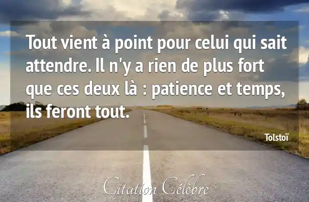 Tout vient à point pour celui qui sait attendre. Il n'y a rien de plus fort que ces deux là : patience et temps, ils feront tout.