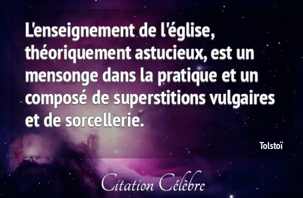 L'enseignement de l'église, théoriquement astucieux, est un mensonge dans la pratique et un composé de superstitions vulgaires et de sorcellerie.