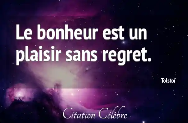 Le bonheur est un plaisir sans regret.