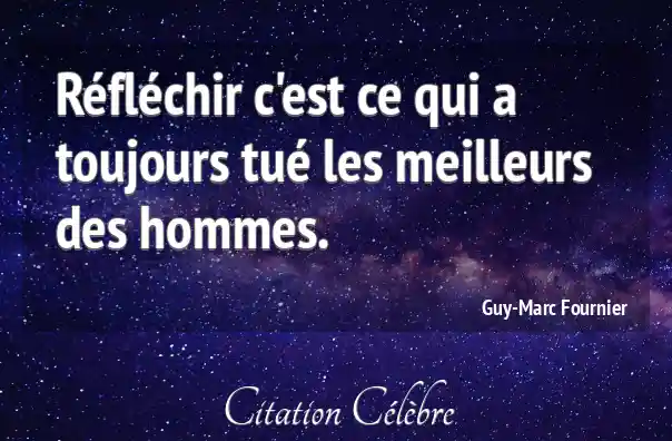 Réfléchir c'est ce qui a toujours tué les meilleurs des hommes.