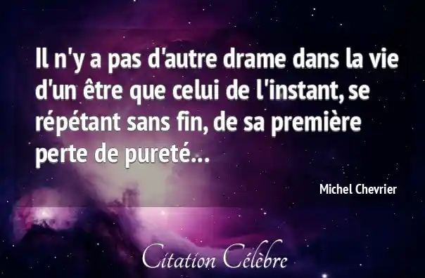 Il n'y a pas d'autre drame dans la vie d'un être que celui de l'instant, se répétant sans fin, de sa première perte de pureté...