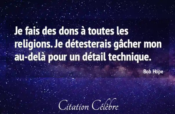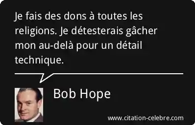 Je fais des dons à toutes les religions. Je détesterais gâcher mon au-delà pour un détail technique.