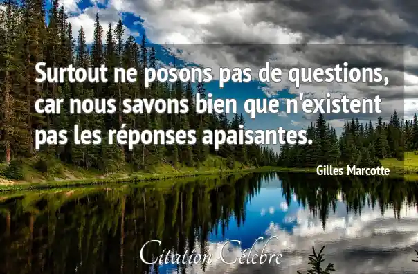 Surtout ne posons pas de questions, car nous savons bien que n'existent pas les réponses apaisantes.
