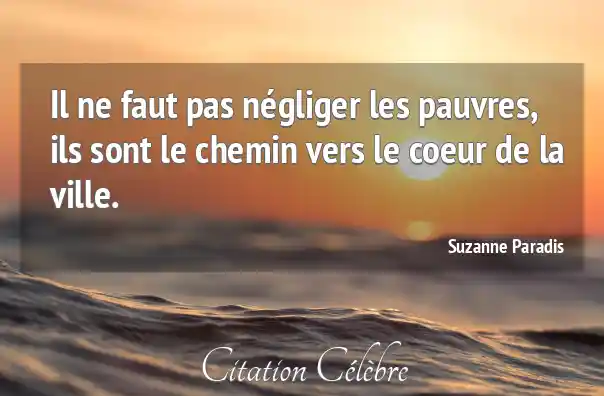 Il ne faut pas négliger les pauvres, ils sont le chemin vers le coeur de la ville.