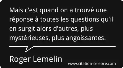Mais c'est quand on a trouvé une réponse à toutes les questions qu'il en surgit alors d'autres, plus mystérieuses, plus angoissantes.