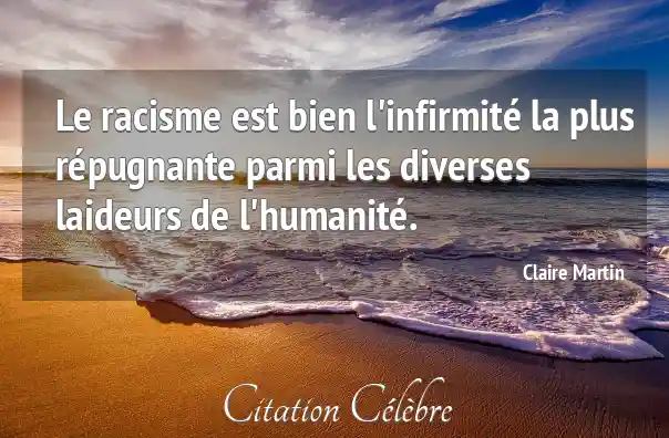 Le racisme est bien l'infirmité la plus répugnante parmi les diverses laideurs de l'humanité.
