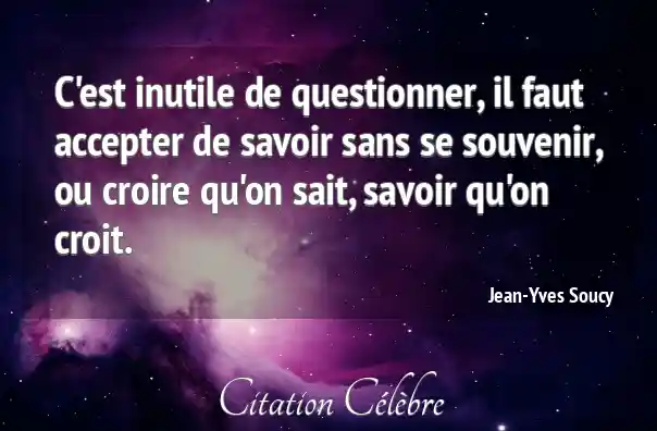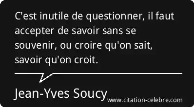 C'est inutile de questionner, il faut accepter de savoir sans se souvenir, ou croire qu'on sait, savoir qu'on croit.