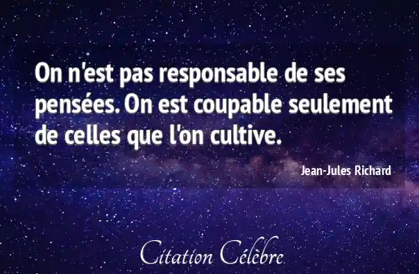 On n'est pas responsable de ses pensées. On est coupable seulement de celles que l'on cultive.